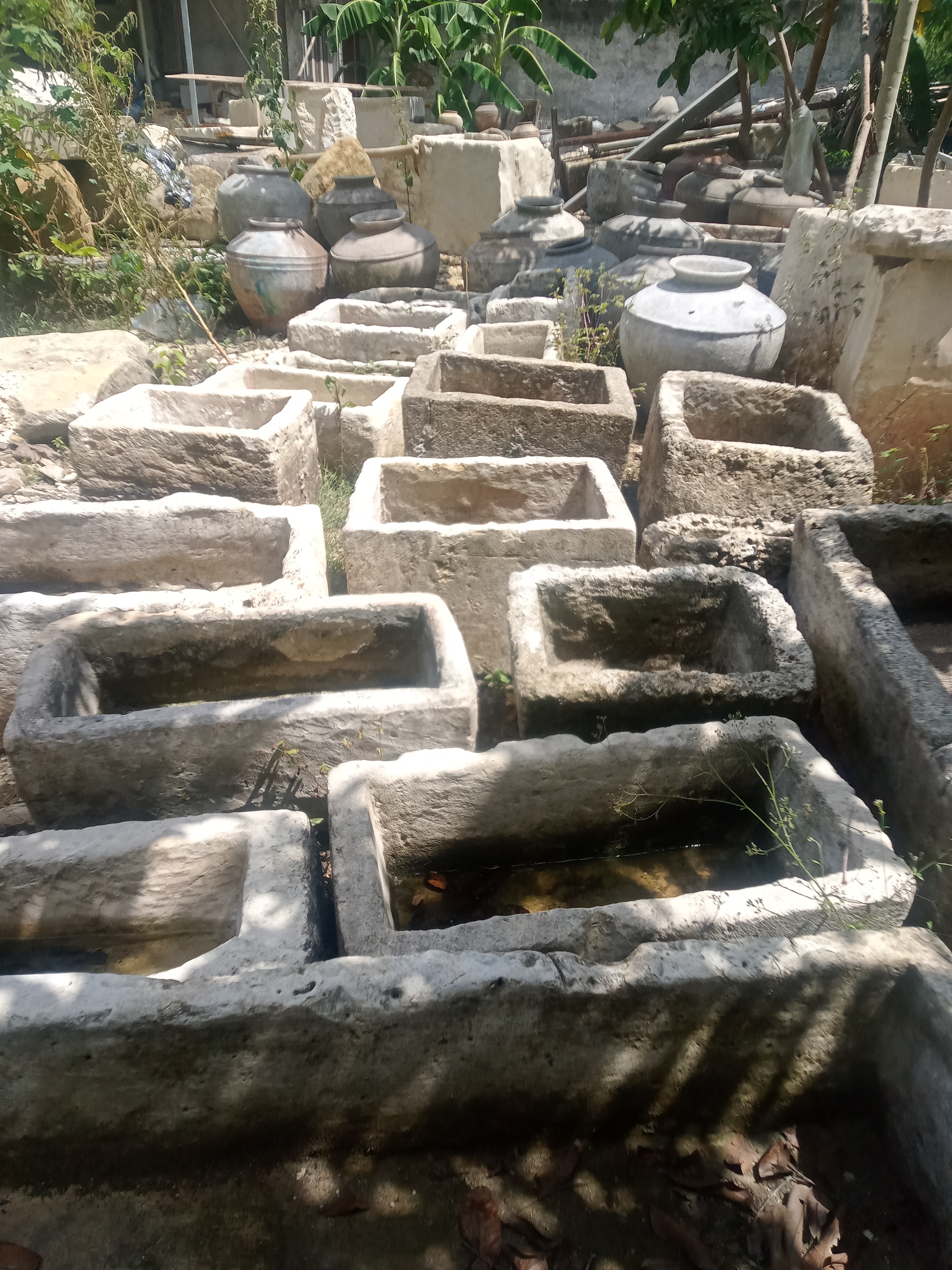 Antique limestone planters, ancient limestone trough for outdoor garden landscaping