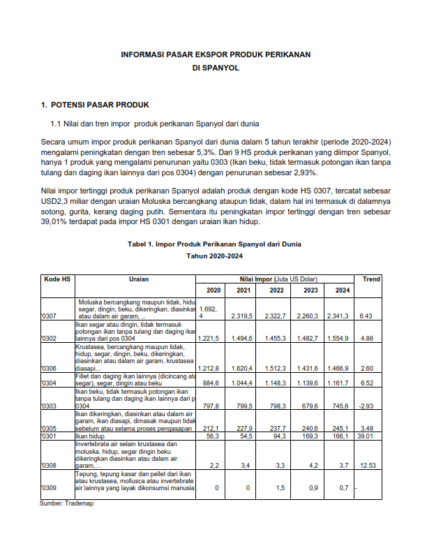 Market information report on fishery product exports