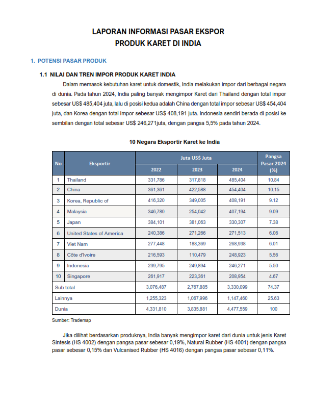 Market Information Rubber Product