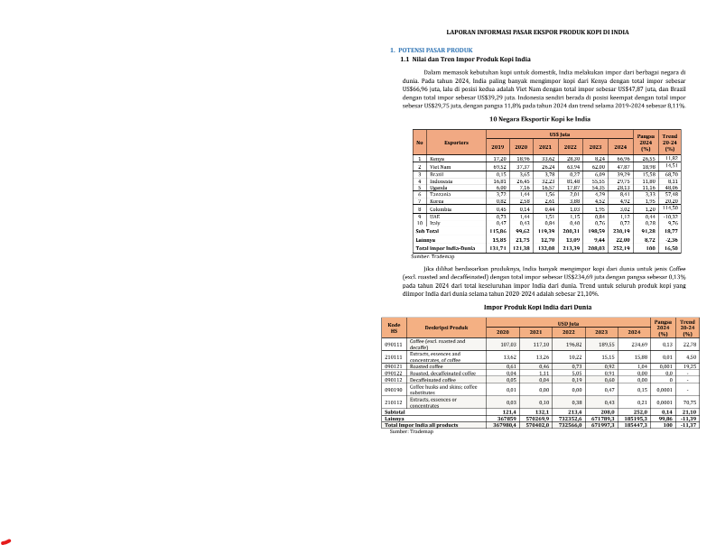 Information on the Export Market for Coffee Products