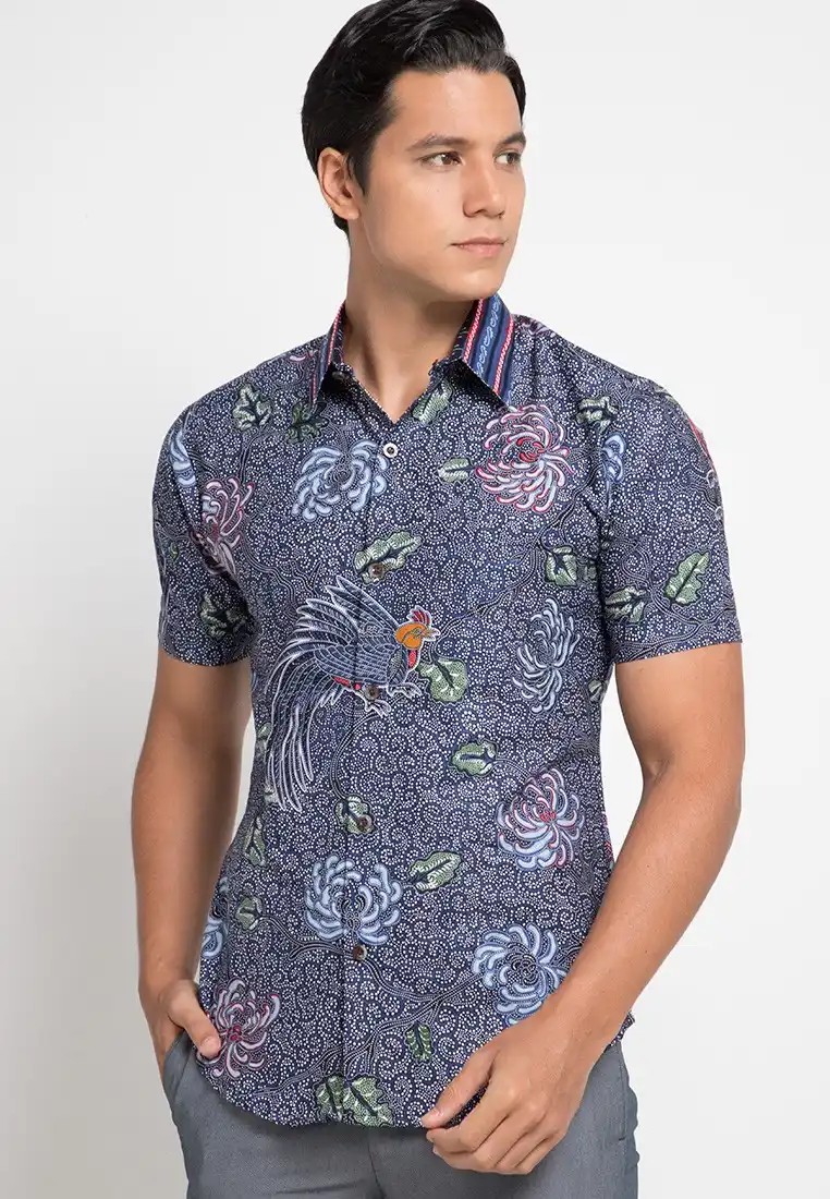 Rianty Batik Hem Short Sleeve Batik Men, Short sleeves slimfit shirt made from cotton with an ethnic design in batik motifs with a pointed collar and left chest ...