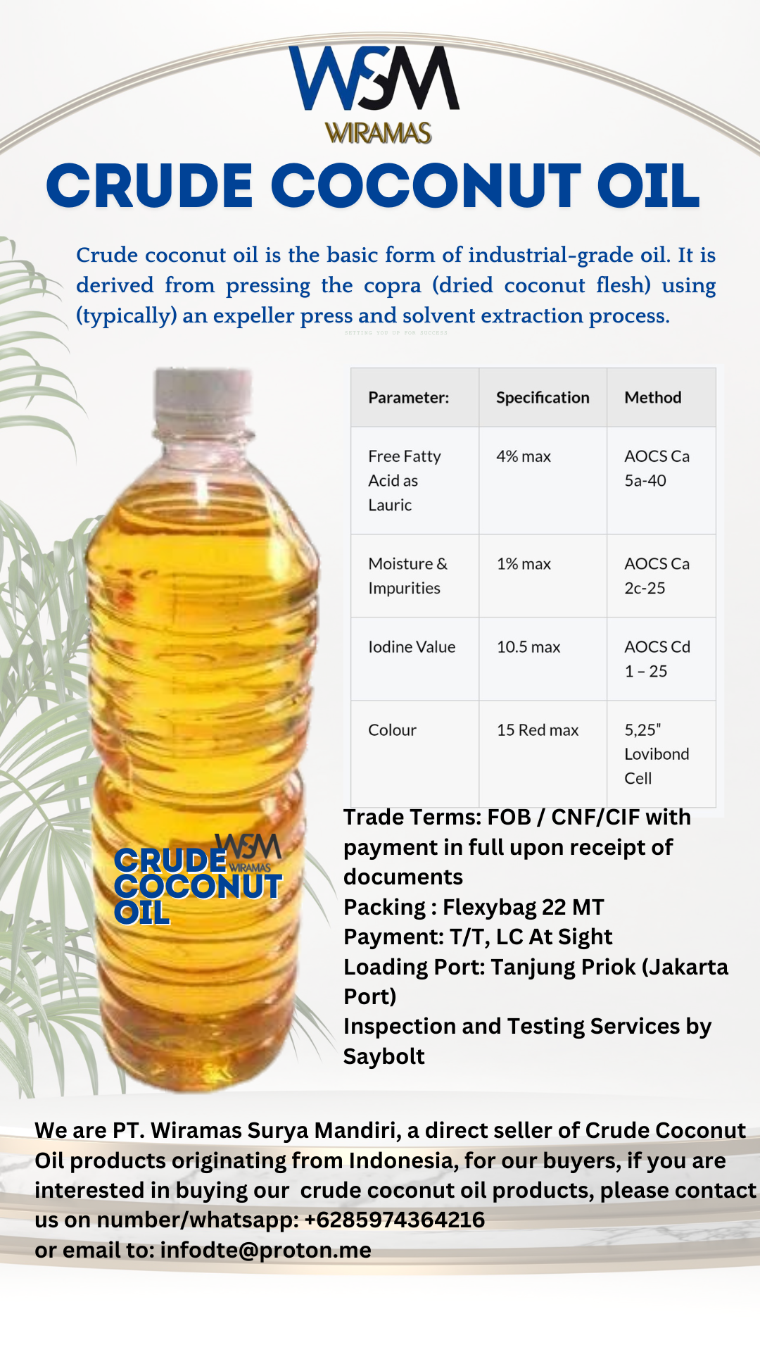Introducing our premium Crude Coconut Oil sourced from the finest copra! 🌴💧