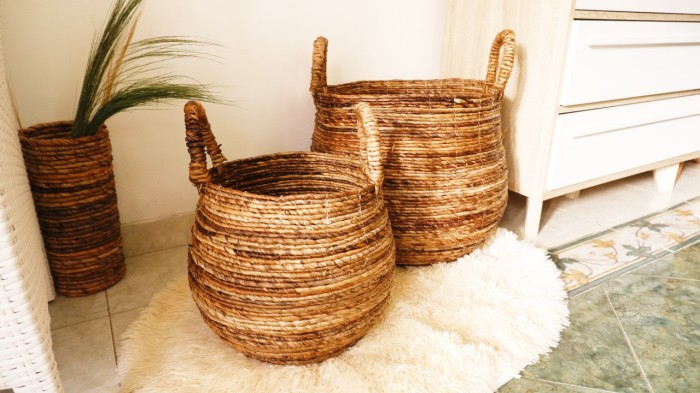 Made from seagrass or natural fiber which is woven to make a round basket with a combination of natural colors.
