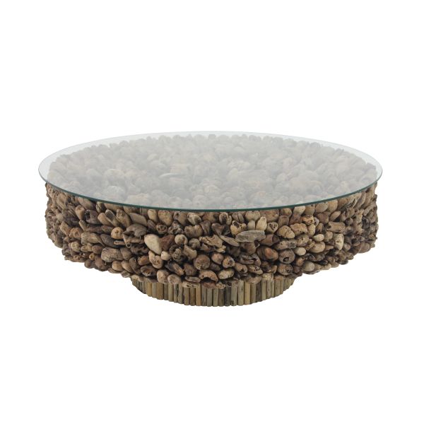 Coffee Table that built of coffee wood for the cantilever and the driftwood for the Top Side with a round shape.