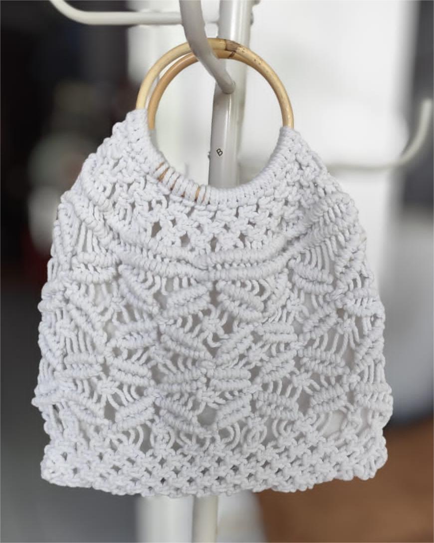 Macrame 'Cotton Threads' handbags with bamboo handles, linen insideĀ