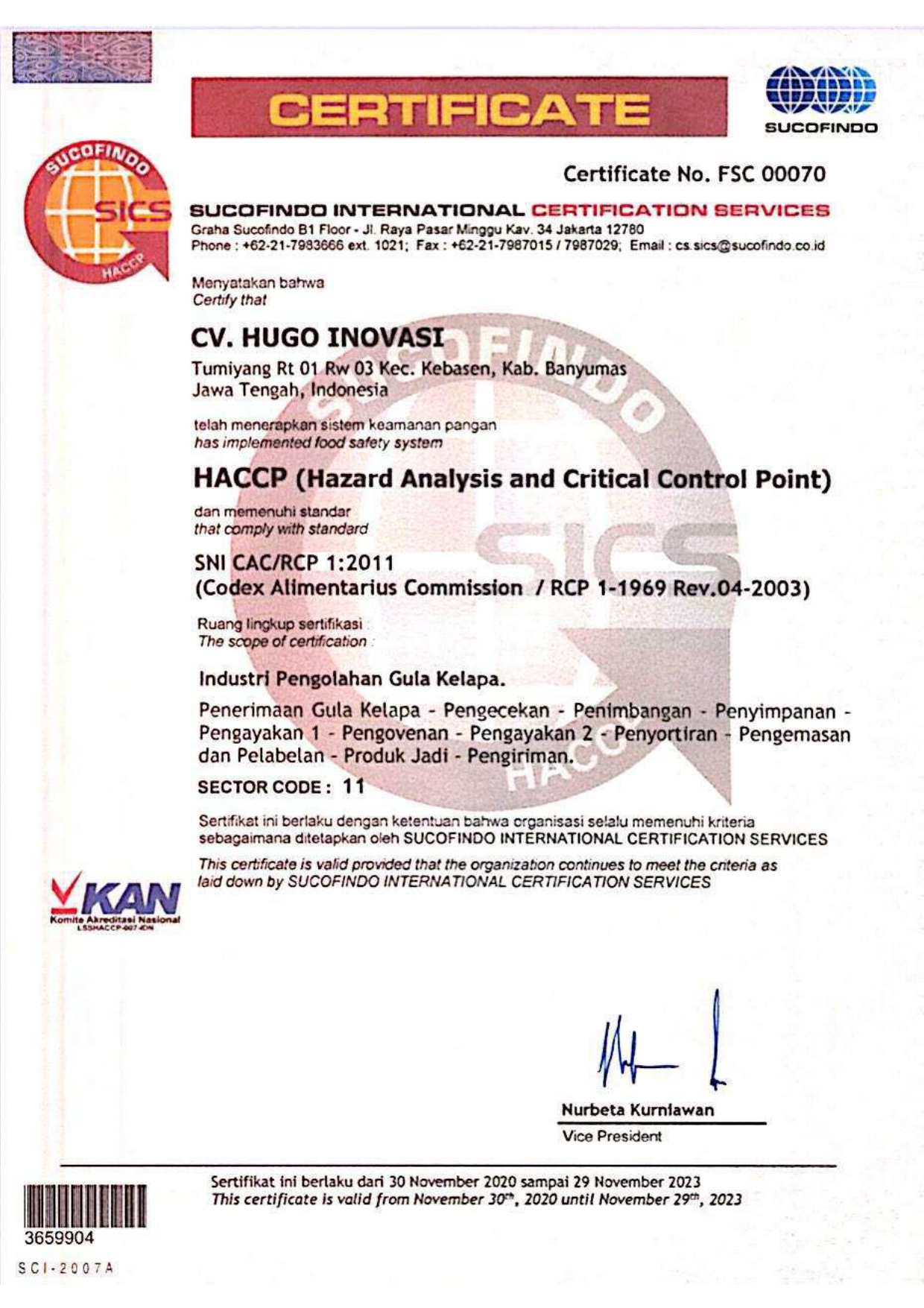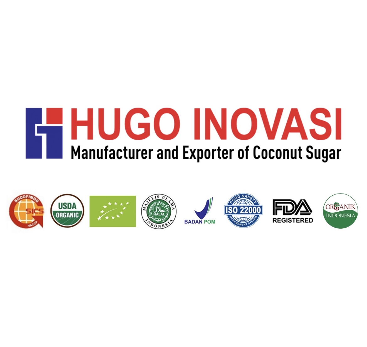 Hugo Inovasi CV is manufacturer and exporter of coconut based product especially coconut sugar. We produce chrystal coconut sugar, coconut nectar, cube coconut sugar, block coconut sugar, virgin coconut oil, coconut chip and also provide fresh coconut. We work together with local farmers, communities, and business partners to create high quality products and deliver them to the world. Our company is located in the Central Java region, Banyumas Regency, which has been producing sugar for generations since thousands of years ago. We really understand the farmers and the culture. We are proud to have developed a sustainable supply chain of coconut and it is derivatives. We work together, we harvest coconut sap every day using production practices that protect the soil and protect trees, it is because our earth is precious. Certificate : Organic NOP USDA, EU and SNI, HACCP, ISO 22000:2018, FDA, BPOM RI, Halal #OrganicCoconutSugar #Manufacturer #Exporter #OrganicEU #OragnicNOPUSDA #HACCP #ISO22000:2018 #FDA #Halal #PalmSugar #CoconutSyrup #CoconutNectar #GranuleSugar #BrownSugarOrganic #IndonesiaCoconutSugar #Nectara #Sugar #Confectionery #CertificateOrganic