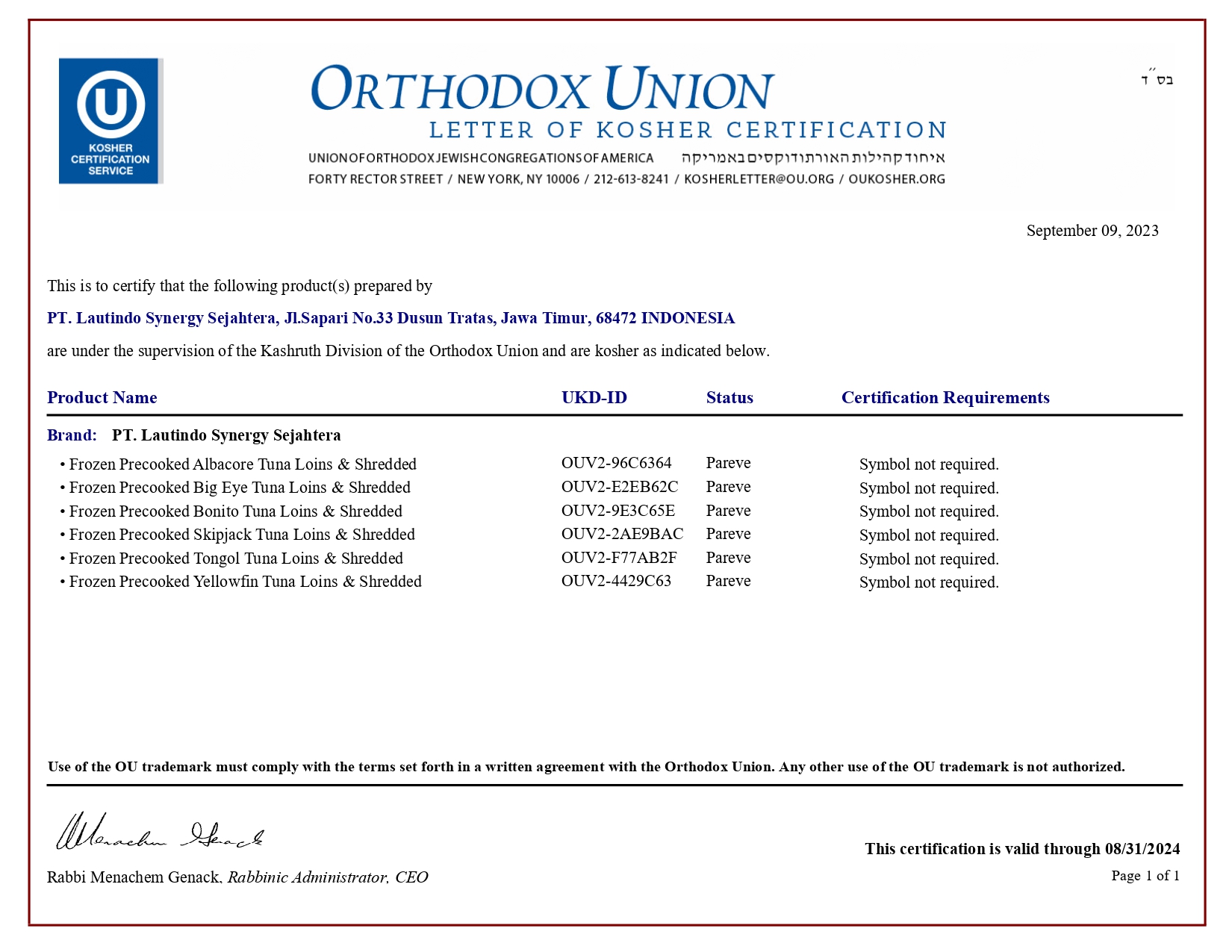 This Certificate Valid From 09 Sep 2023 Until 31 Aug 2024