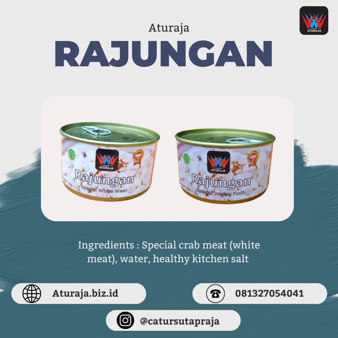Rajungan is special carab product from Aturaja. Being processed without preservatives in can packaging applied GMP and HACCP standards further licenced Halal certificate.