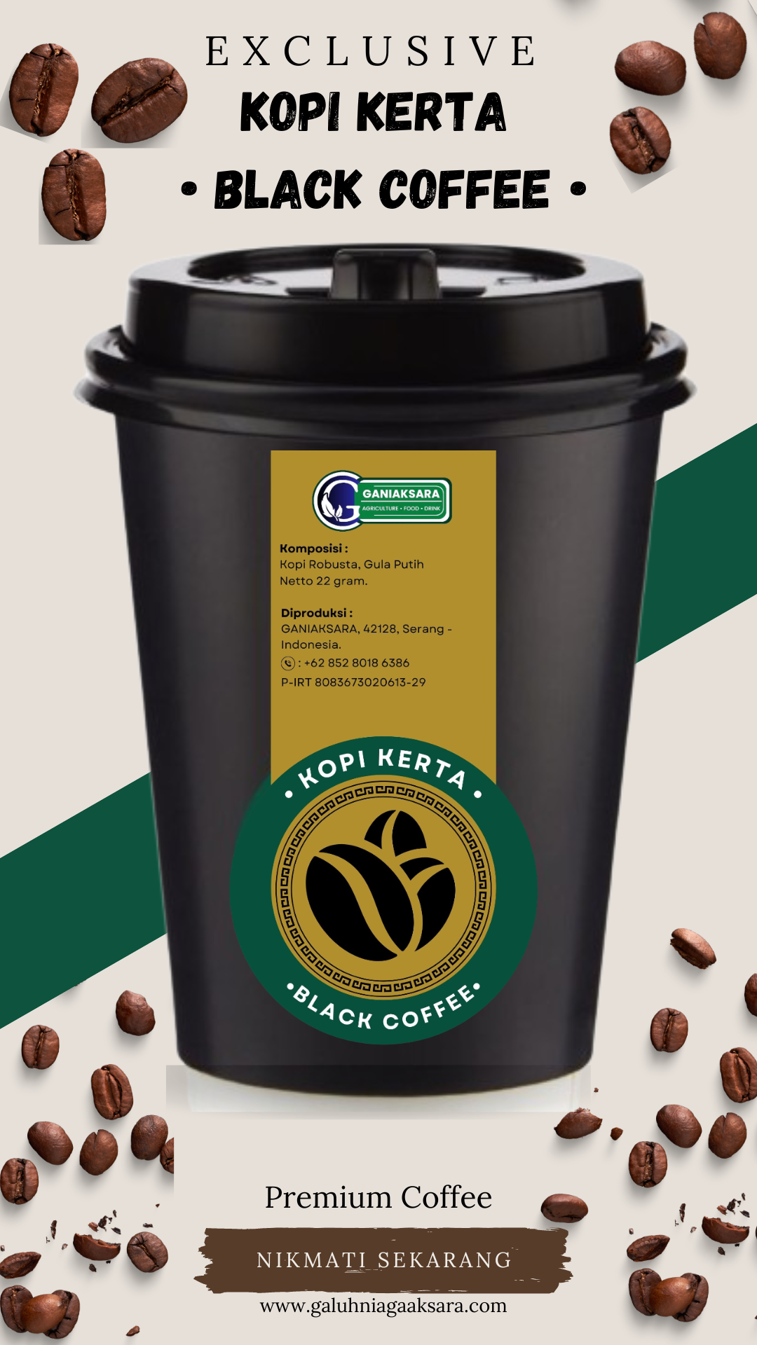 Made from 100% premium coffee beans from the Banten region without a mixture of other ingredients. Can be served in Tubruk Version & Dripbag Version. Selected premium coffee beans mixed with palm sugar, strong aroma & delicious taste characteristic of premium coffee which is beneficial for the body: :