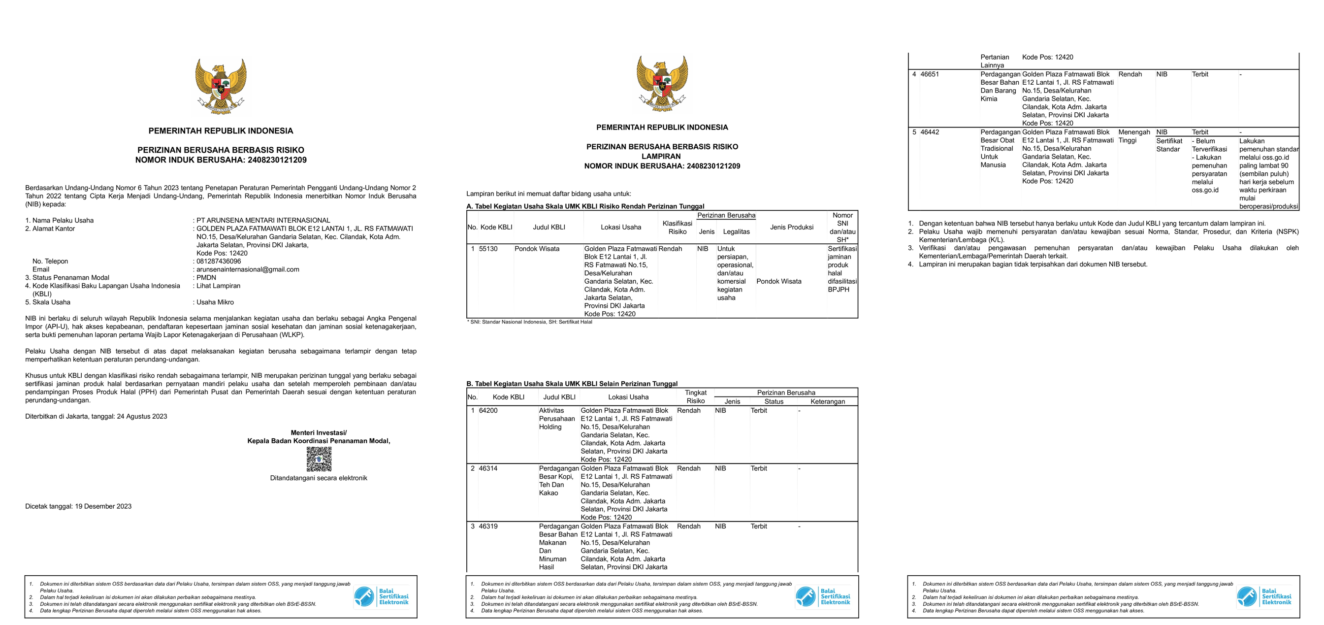 PERIZINAN BERUSAHA PT SINKONA INDONESIA LESTARI