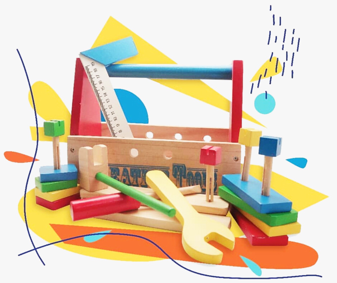 Wood/plastic material or a combination of wood and plastic, colorful, and attract children's attention • 1 set contains at least 15 types of replica toys, with proportions referring to the size of the original object (according to the context), length 7-20 cm, width 3-20 cm • Carpentry tools such as: planer, ruler, square, hammer, ...