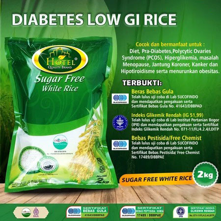 "SUGAR FREE HOTEL RICE & LOW GLYCEMIC INDEX (IG 51) Suitable for sufferers of DIABETES / Pre-Diabetes, DIET, Coronary Heart problems, Cancer, Menopause, Hypothyroidism, Hyperglycemia, Polycystic Ovaries Syndrome (PCOS), and reducing Obesity (Overweight). PROVEN: - Sugar Free Rice Has passed the trial at...