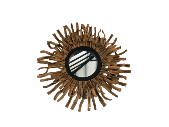 wooden wall decoration, wooden mirror made of unique materials that is liana root, and combined with mahogany wood frame