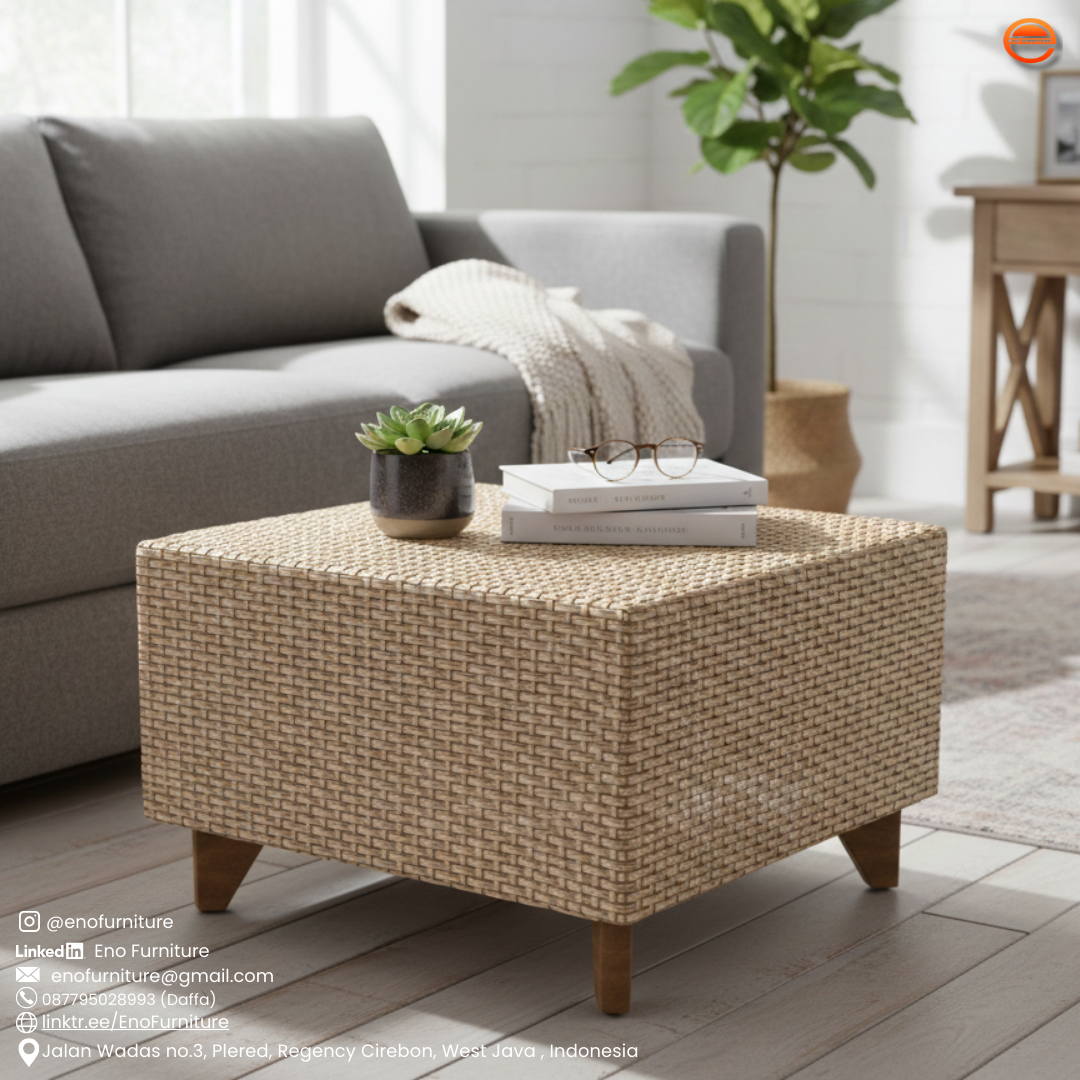 Square Rattan Coffee Table – Handwoven Natural Living Room Table (SakaTable)