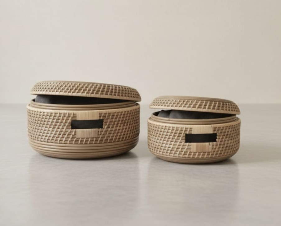 Handwoven Banana Leaf Basket – Round Natural (Ø 30 cm)
