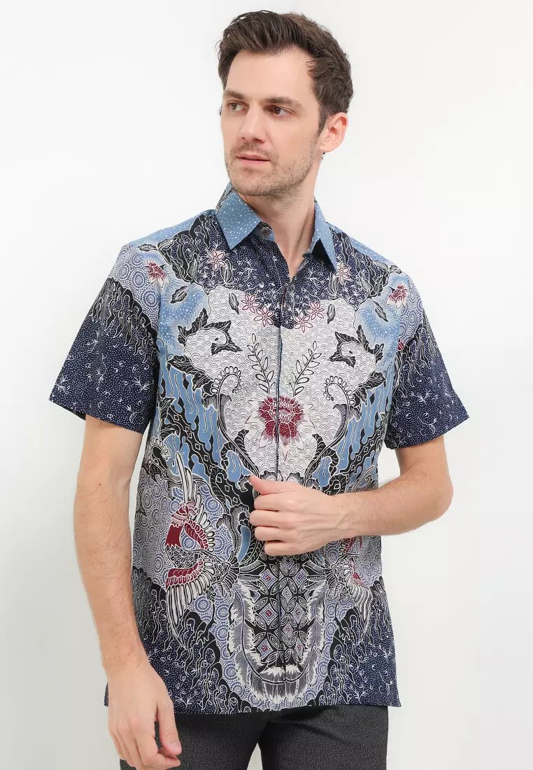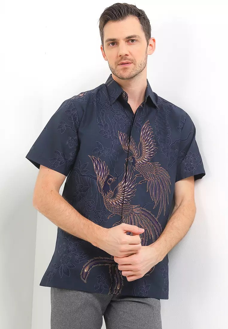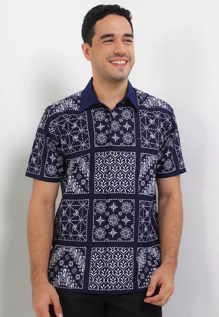 Men's Shirt Short Sleeve Batik Cap Dobby Special JFW Collection Binar Aksaja Navy – Rianty Batik