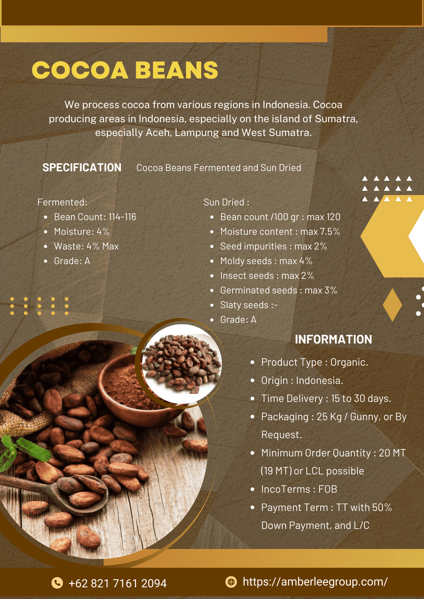 Color: Dark brown, Size (cm) : 13 - 16 (length), Vanilla content: 1%, Moisture content: 25%-30%, Ingredient: Vanilla beans, Certifications U.S.FDA, SICS Organic, Indonesia Agricultural Quarantine Agency, SIG, Packaging: Vacuum sealed plastic, Packing size: 1kg net weight, Optional packing : 500 gr, 2kg