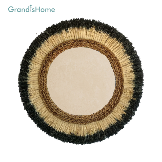 Round Mirror from full black cornhusk and banana bark D68cm Open Custom Size