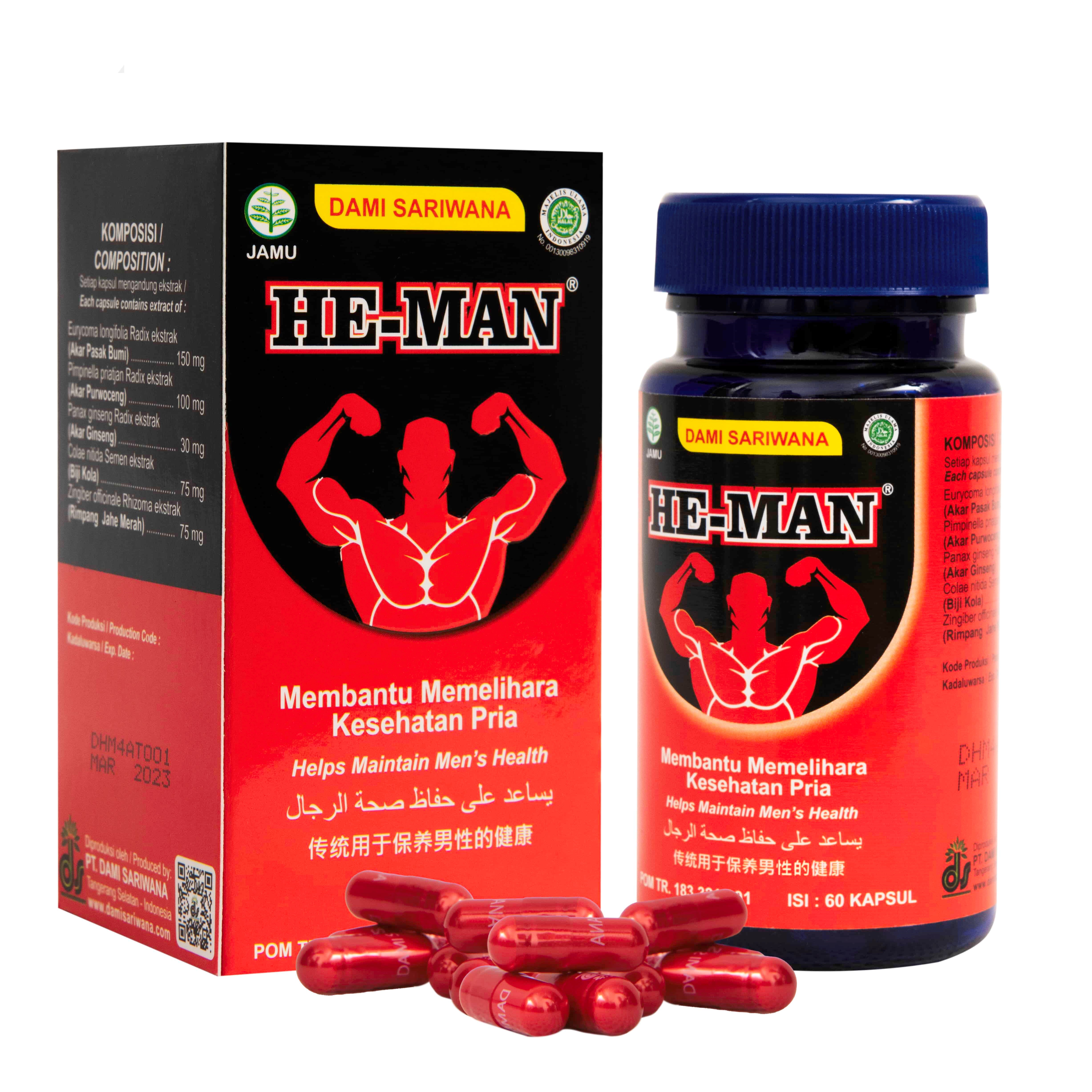 He Man Function                        :           Helps maintain man’s health Direction of use          :           2 capsules, twice a day (After...
