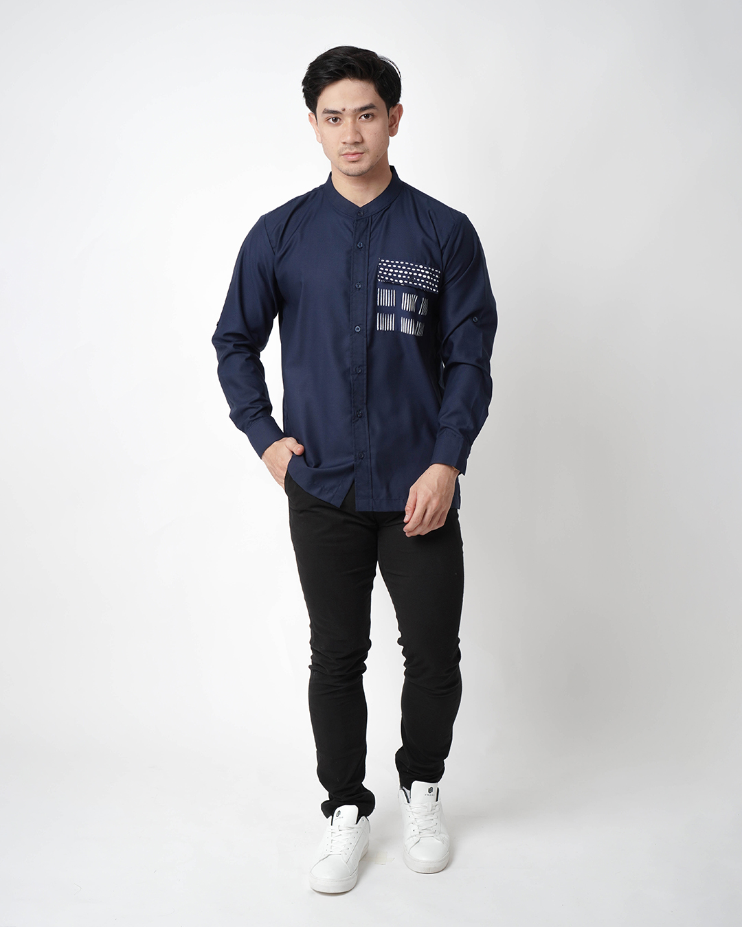 NOAH SERIES NAVY Motif : Parang (Batik cap) Material : - Toyobo Fodu Cotton Features : - Single Pocket Design - Regular - Formal & Casual Looks Talent Height : 175 cm Weight : 73 kg Wear size L ...