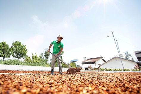 Dried cocoa beans and powder from plantations in East Java, Sumatra and surrounding areas