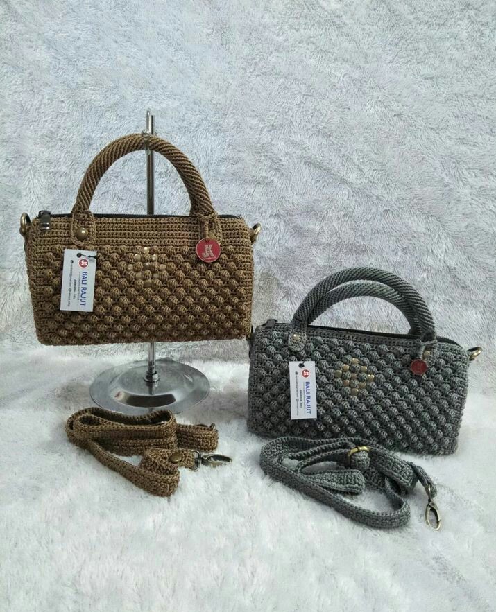 Knitted bags are made from nylon yarn.