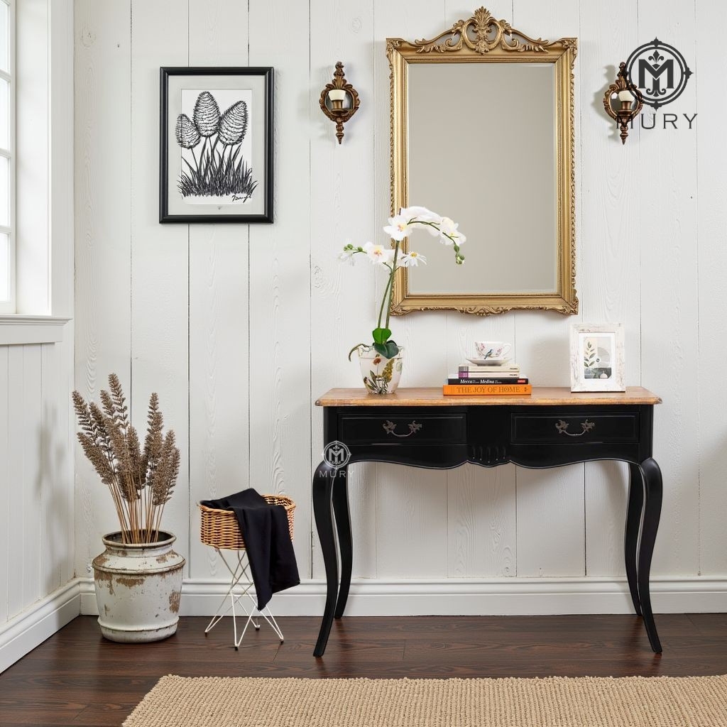 Provincial Hall Table, handcrafted finished in a deep classic black, this table showcases the refined silhouette of French provincial style with ornate curves and cabriole legs. The two drawers ...