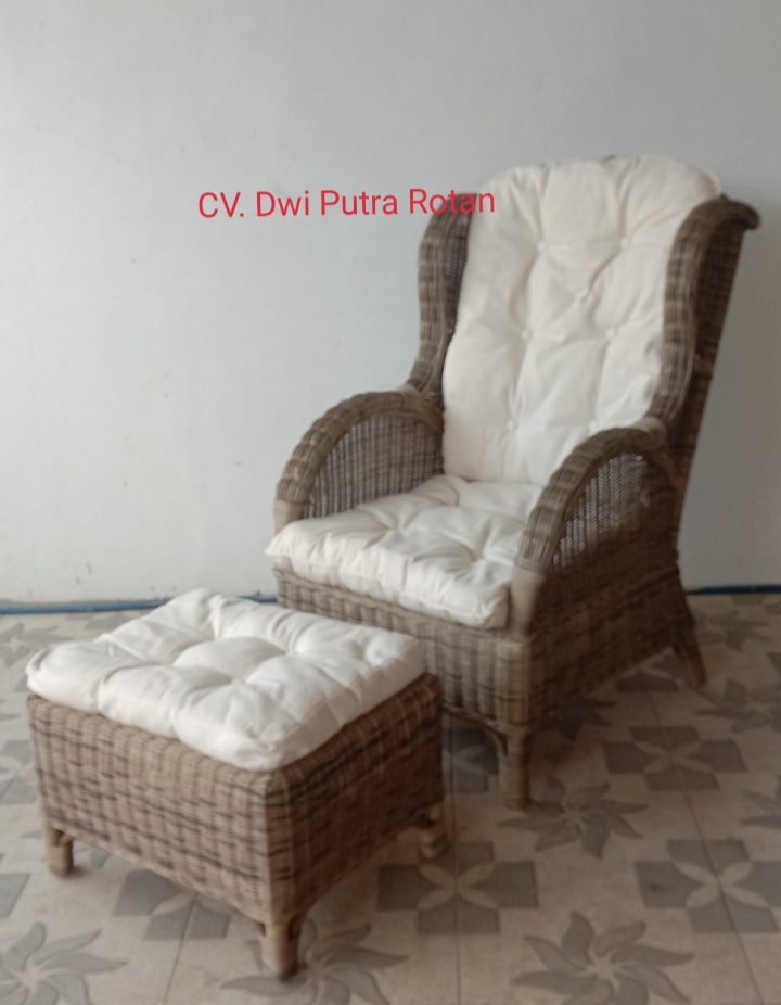 Wing chair & hoker include cushions,color dust frame and weaving,cushions color white