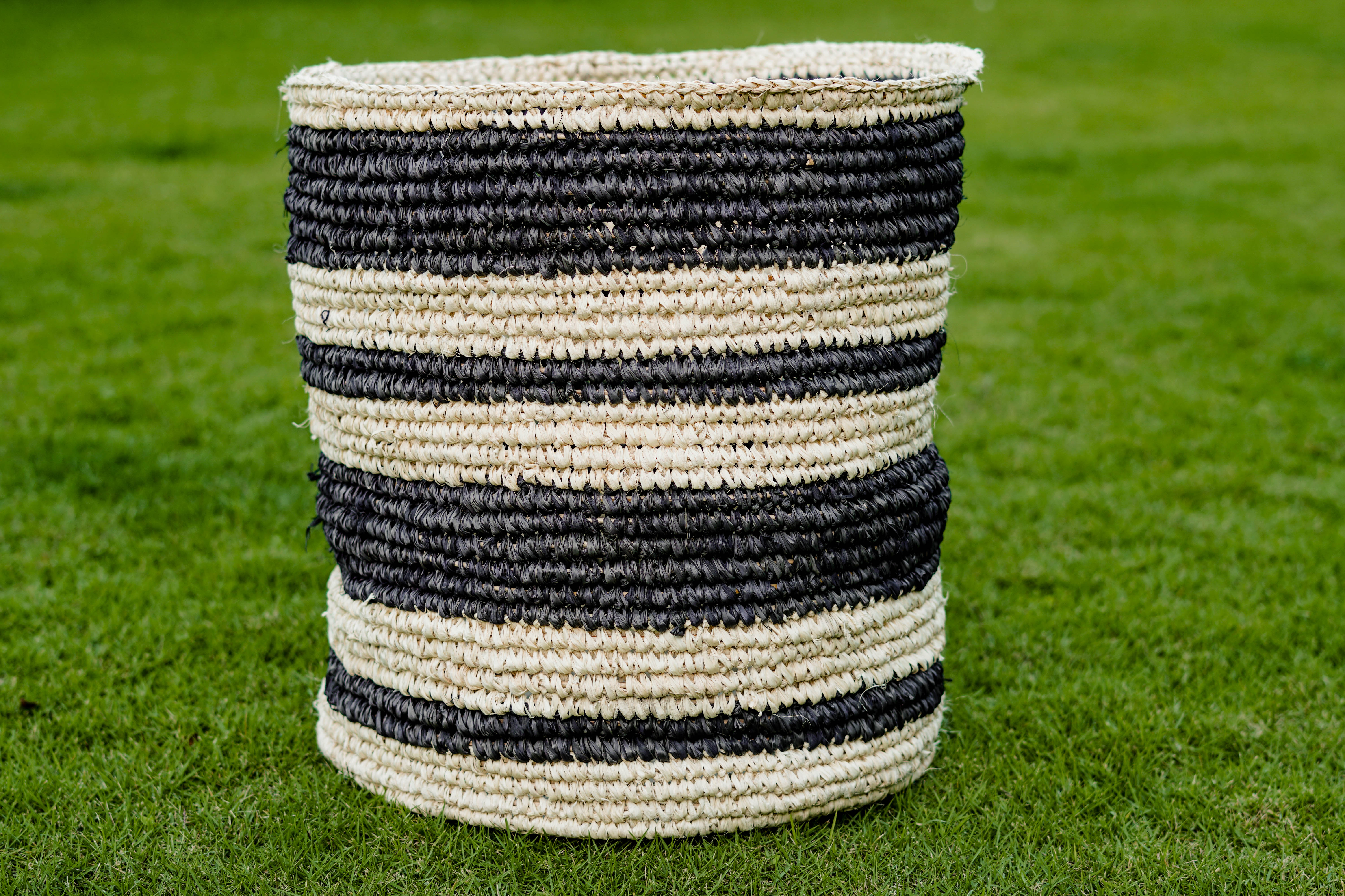 A single basket made from natural raffia palm leaves (Corypha utan sp.) handwoven in its natural and black color. The structure of this basket is using natural rattan core therefore ...