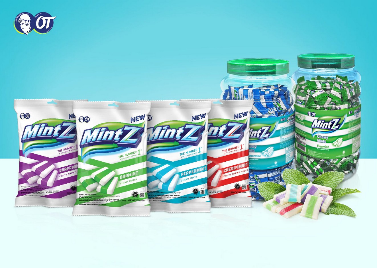 Triple layered mint chewy candy, non-stop minty coolness sensation.   Variant: Duomint, Peppermint, Cherrymint, Grapemint Content/Carton: 2.3gr x 50pcs x 24bags / 2.3gr x 200pcs x 6jars Shelf life: 24 months