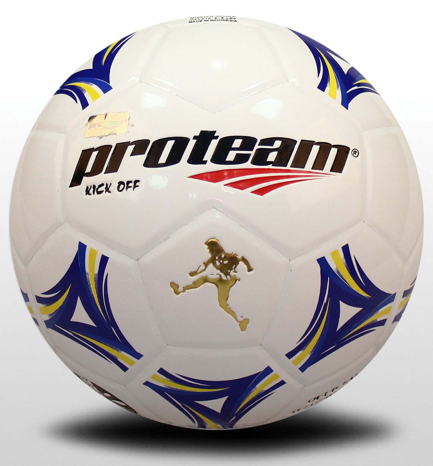 Proteam - Kick Off, soccer ball laminate, for outdoor grass field use, FIFA specification, for macth and training. Highgloss PVC, 100% butyl bladder, 32 panles laminated, available in size 5, size 4 and size 3