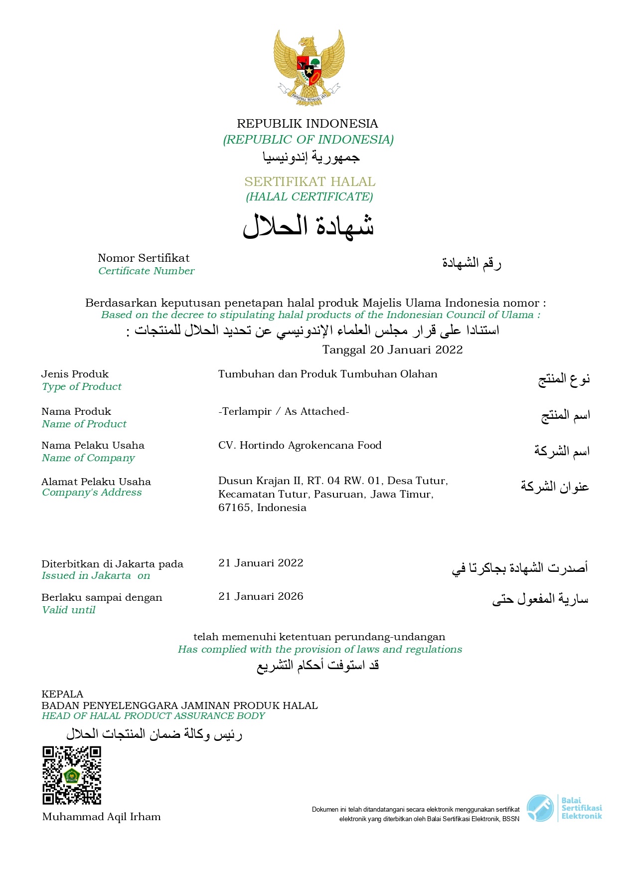 Type of Certificate HALAL CERTIFICATE
