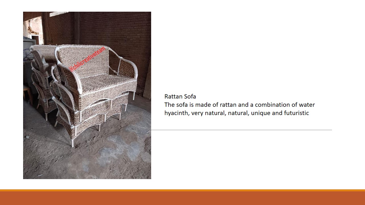 Rattan Sofa The sofa is made of rattan and a combination of water hyacinth, very natural, natural, unique and futuristic