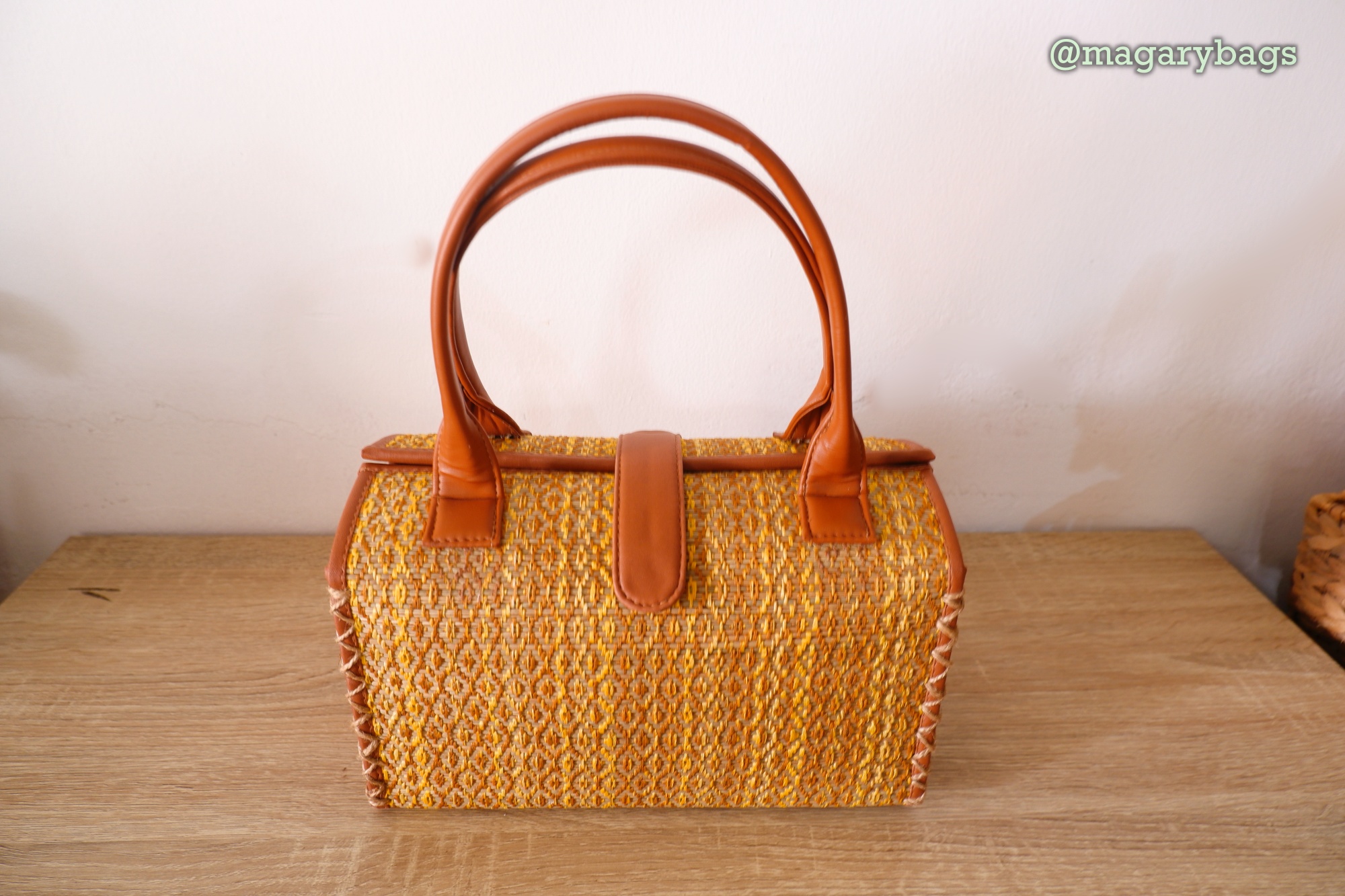 Rattan-based bag which is woven and combined with genuine cow leather. Can be used for going to the office, working, going to the mall, taking walks, vacations, going to the beach, invitations, hanging out with relations or daily activities. Material: Rattan and genuine cow leather