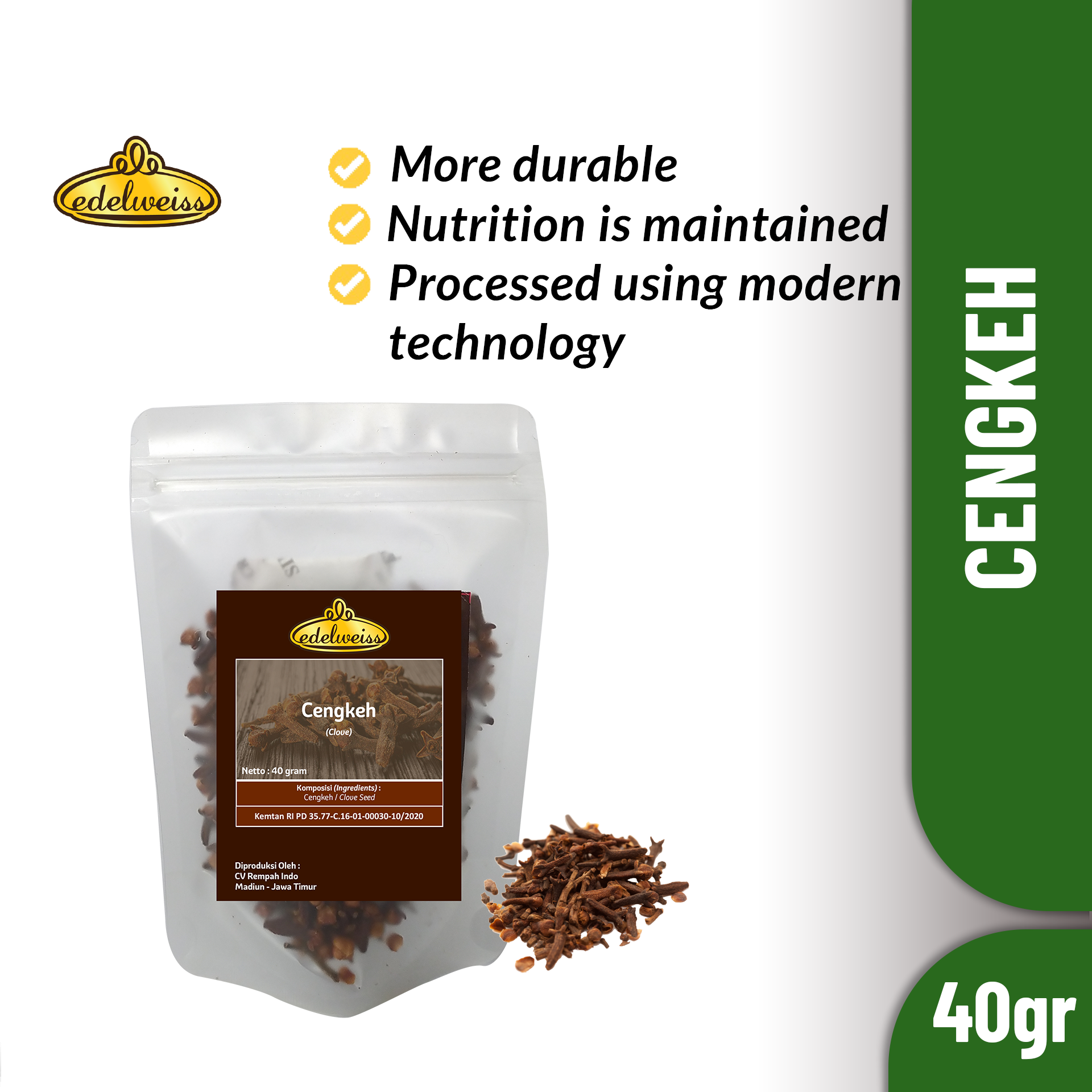 Edelweiss Clover is the best quality Clover originated from Pacitan-East Java Indonesia. Pacitan is one of the best largest and producer Clover in Indonesia. Made from selected Clover without preservatives added.