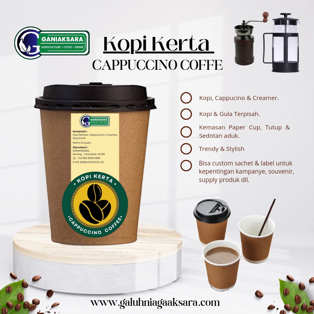 Cappuccino coffee is one of the favorite variants of coffee without grounds. The combination of Espresso coffee and milk creates a new sensation for coffee lovers. Kopi Kerta - Cappuccino Coffee is here to meet the needs of Cappuccino Coffee lovers with trendy & stylish packaging to add a luxurious impression to enjoying coffee. -...