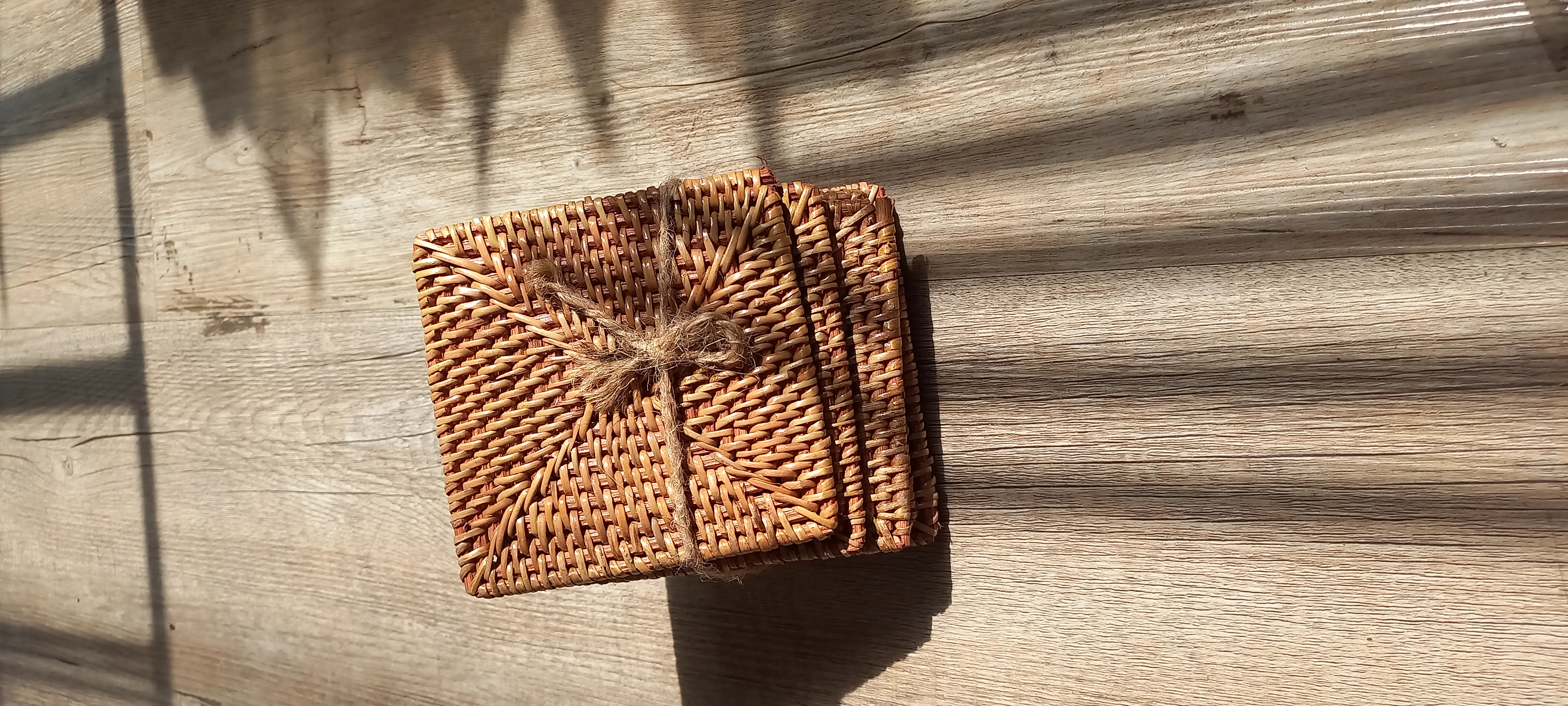 Woven glass coasters made of quality rattan atte. The basic ingredients for this product come from abundant natural ingredients. have 4 sets in brown