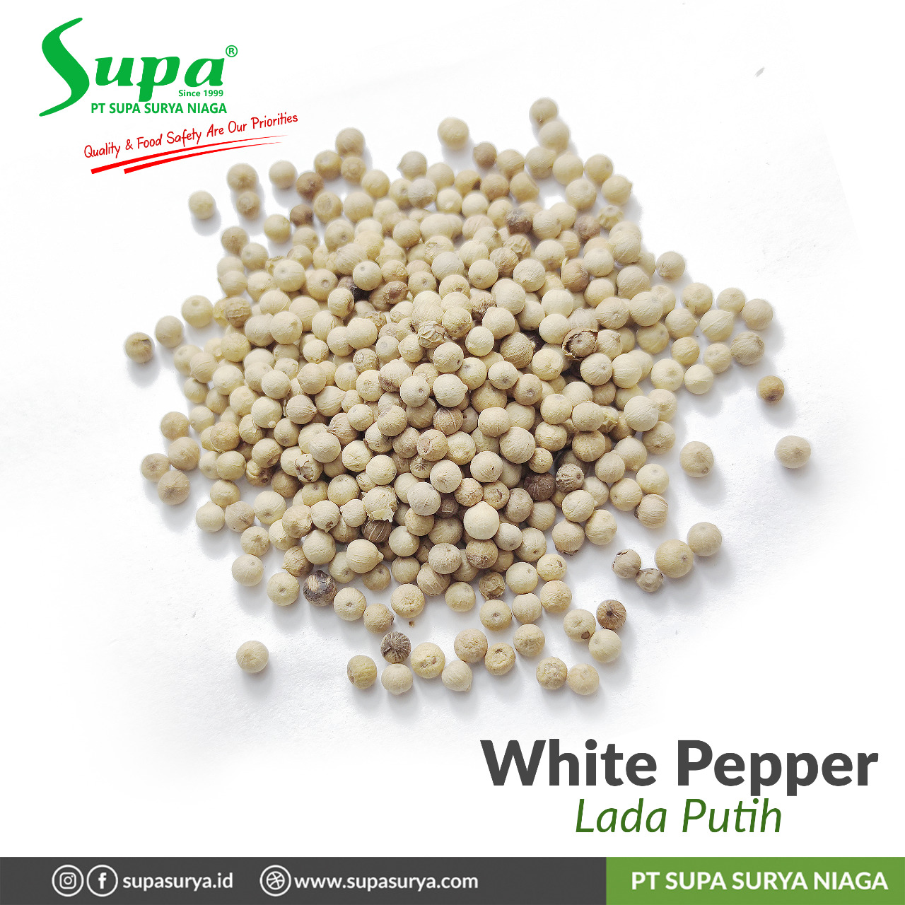 White pepper is one of the spice varieties produced from mature pepper seeds. These pepper seeds are stripped of their outer black husk, revealing a white interior. White pepper has a milder and sharper taste compared to black pepper, with a distinctive aroma and a touch of spiciness. This spice is commonly used in various cuisines, primarily...