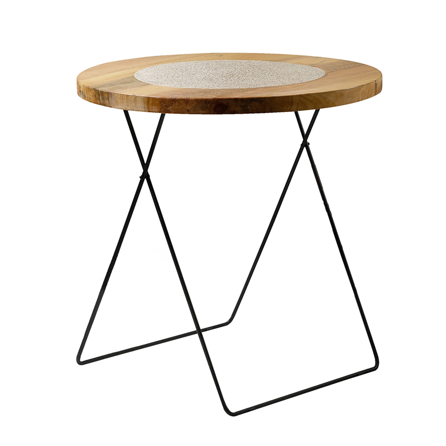 Round Terrazo Table elegance of our round terrazzo coffee table. Meticulously handcrafted, this table features a captivating terrazzo top with a unique blend of colors and patterns.   - Height = 70cm - Wood Diameter = 79cm - Wood Thickness Include Terrazo = 4cm