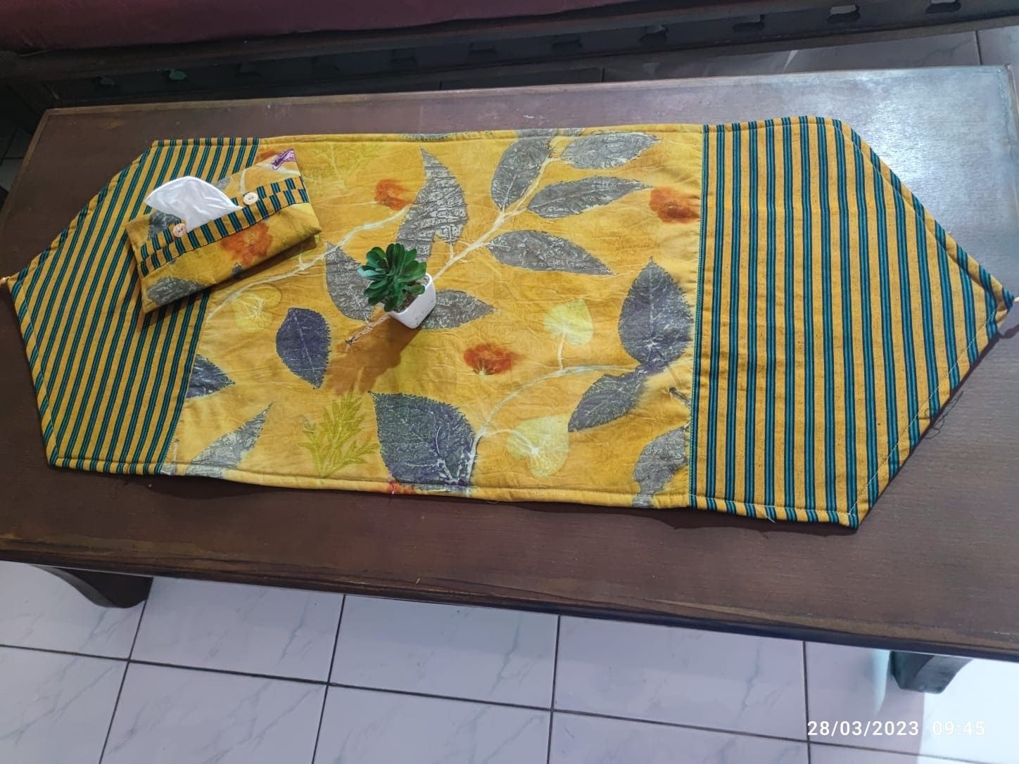 Table runner made from ecoprint cotton