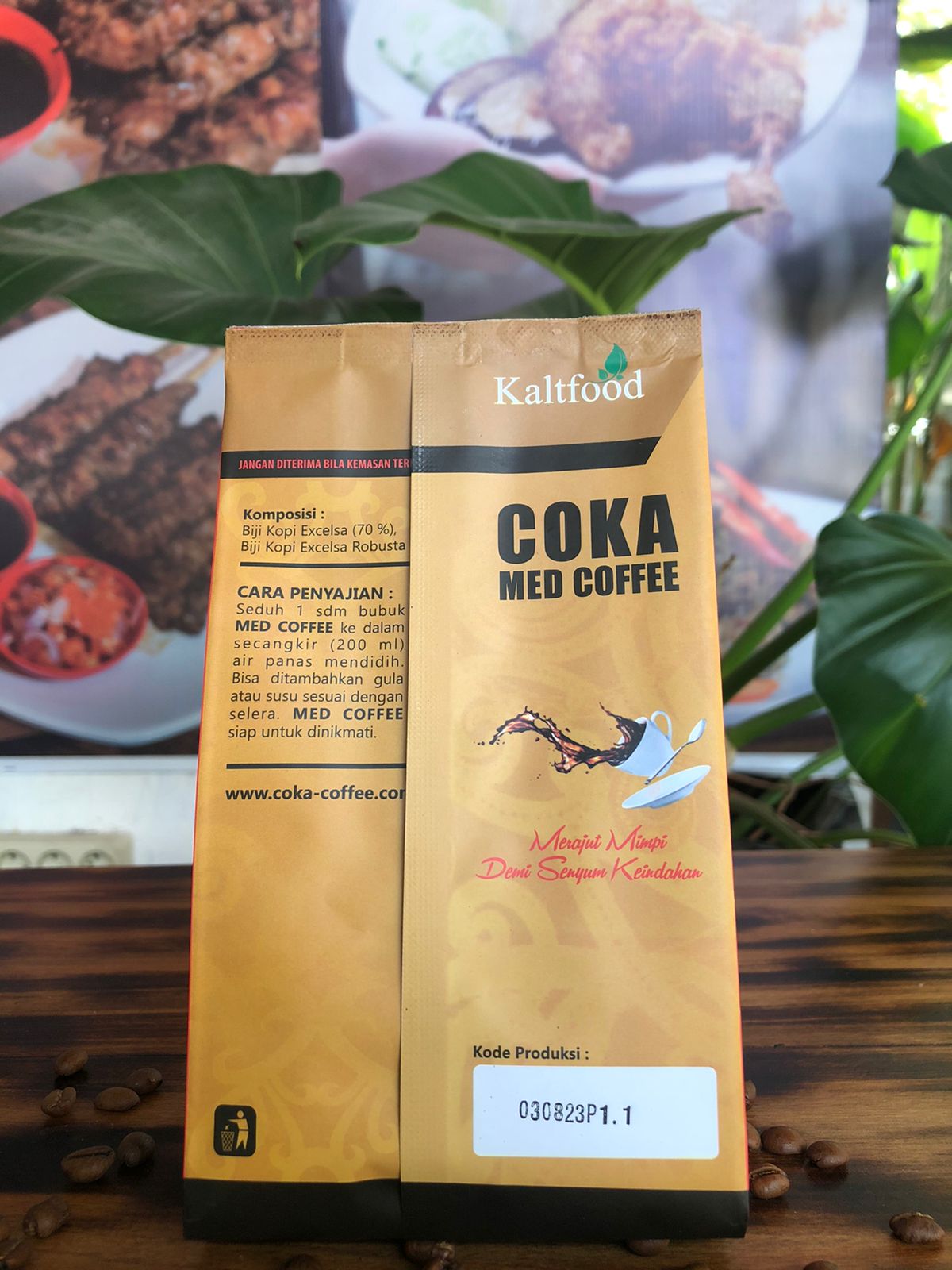 Med coffee is a product variant from PT Kalfood Bumi Sejahtera in the form of ready-to-brew ground coffee with a net weight of 100 gr per pack. Med coffee consists of 80% Excelsa Beans and 20% Robusta Beans native to Kalimantan, so it has a distinctive taste with a strong nody and has an aftertaste with a distinctive aroma of fruit typical of the Kalimantan forest.