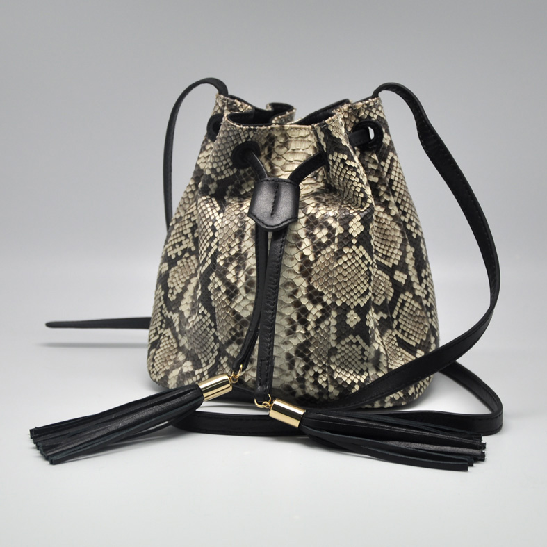 Handbag from genuine python skin. Zipper closure. Interior lining from sueede fabric. Zipped pocket inside.