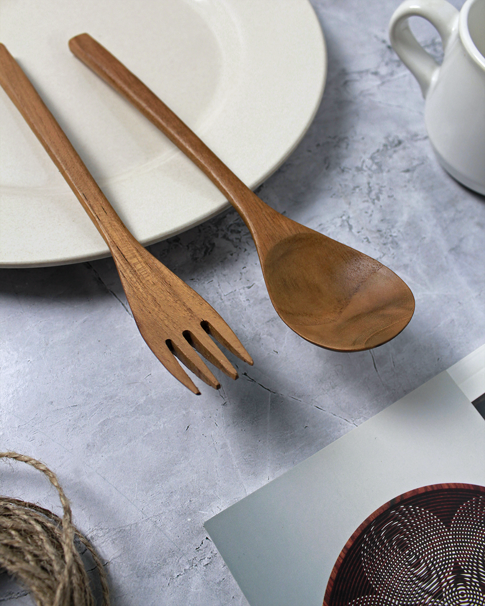 Sendok garpu Multifungsi yang dibuat oleh pengrajin lokal di Indonesia. Menggunakan bahan kayu Jati berkualitas dari PT. Perum Perhutani.
