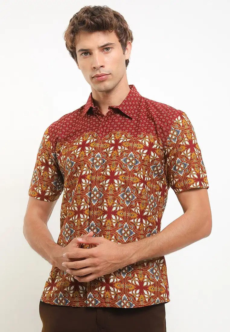 Short sleeve slimfit shirt for a formal look with a classic batik print motif