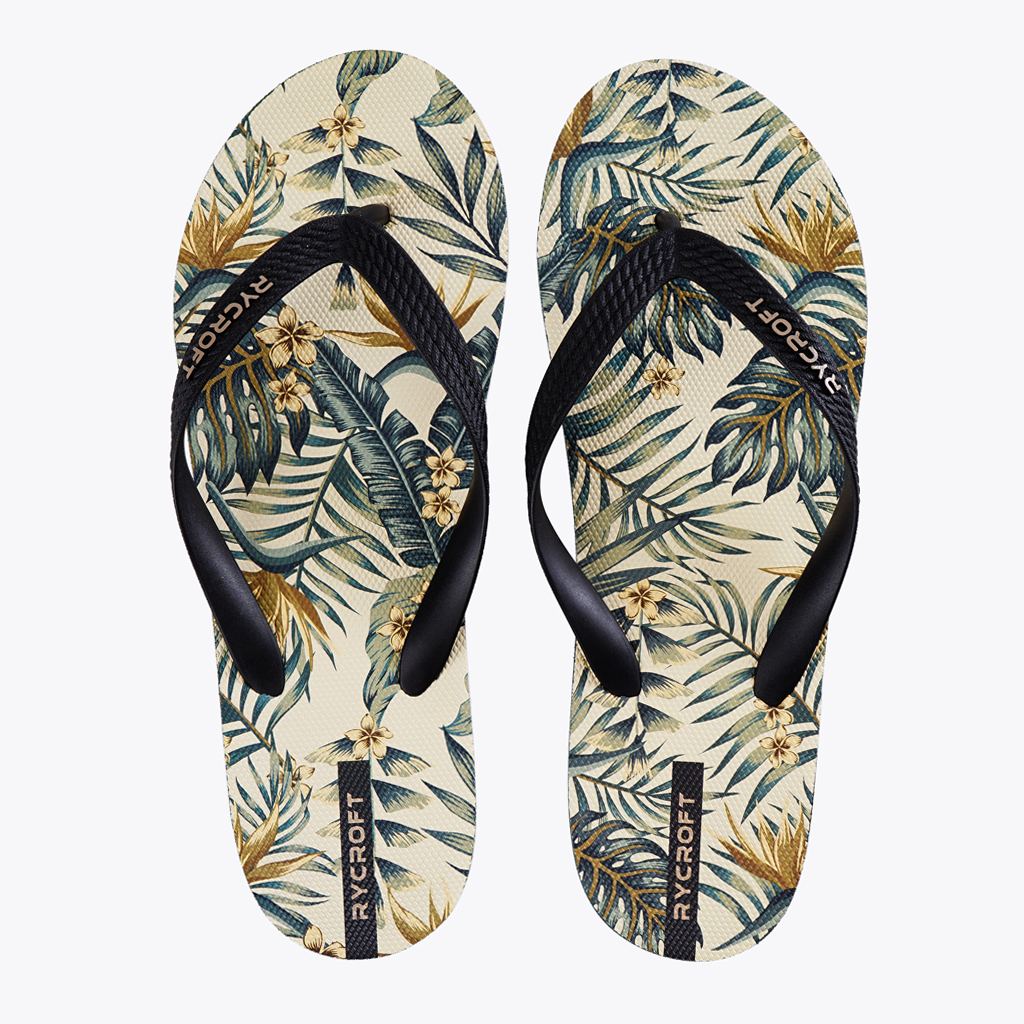 Rycroft Hawaiian Oasis Flipflop presents a colorful tropical feel with fresh Hawaiian foliage and flower motifs. This design gives a relaxed and stylish impression, suitable to accompany daily ...